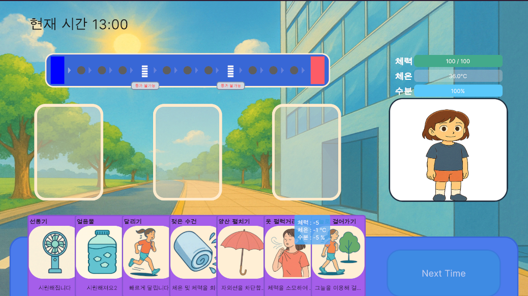 체력, 체온, 수분 관리 시스템